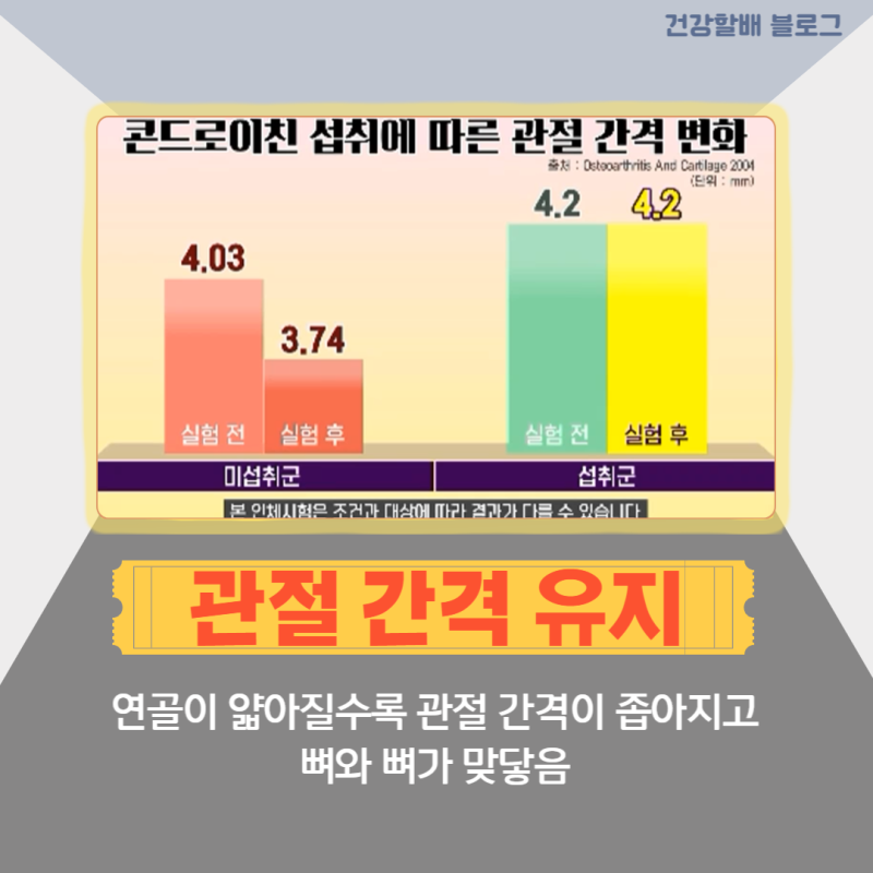 콘드로이틴은 체내에 존재하지만 콘드로이틴을 합성하는 능력은 나이가 들면서 점차 감소하여 20대부터 시작하여 20대가 되면 절반으로 떨어진다고 합니다. 40대. 연골을 구성하는 핵심 물질. 연골이 닳아 없어지면서 마찰이 일어나 관절 길이가 짧아지면서 관절의 길이도 짧아지기 때문이다. 따라서 관절과 관련된 문제를 일으키게 되므로 콘드로이틴을 충분히 보충해 주는 것이 필요합니다.